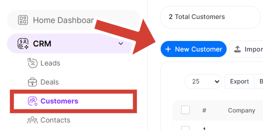 Instead of creating a customer from scratch, you can also convert an existing Lead into a Customer: