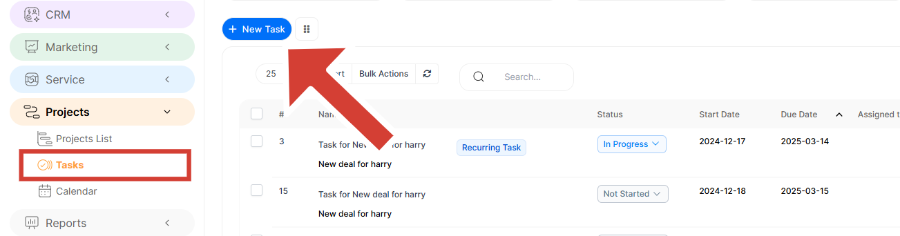 In order to create a new task, from the main menu navigate to Tasks and click on the New Task button.