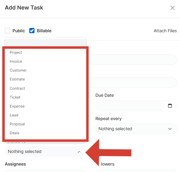 On the Related to field select where this task will be linked.