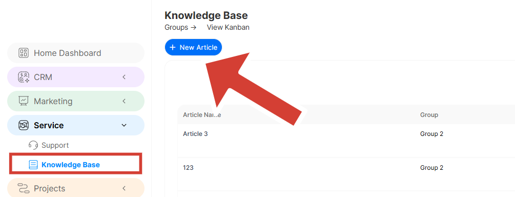 Group – Assign article to a specific group. Eq Hosting, Domains etc…