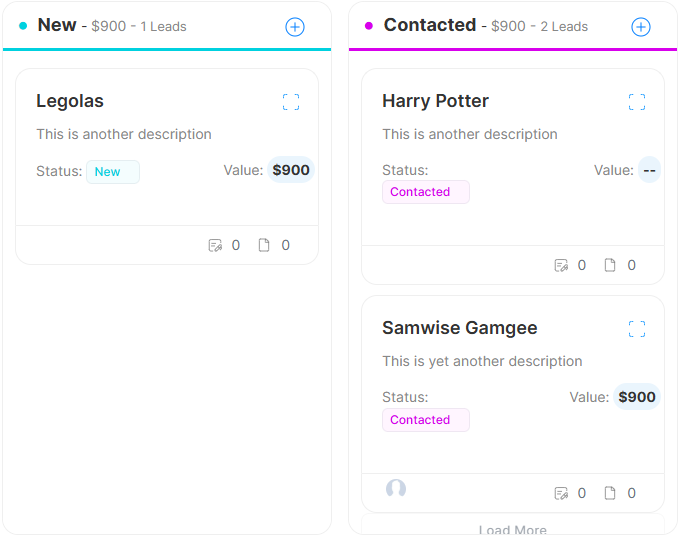 Easily move Lead cards across different columns to reflect their current status.